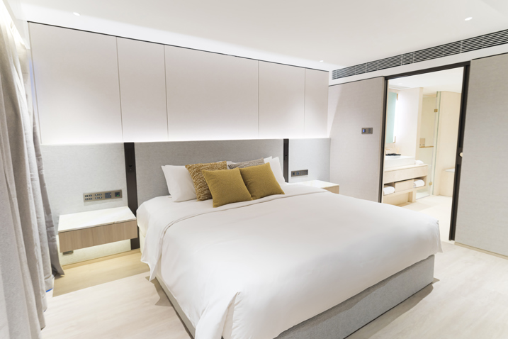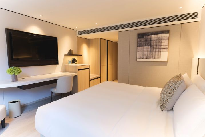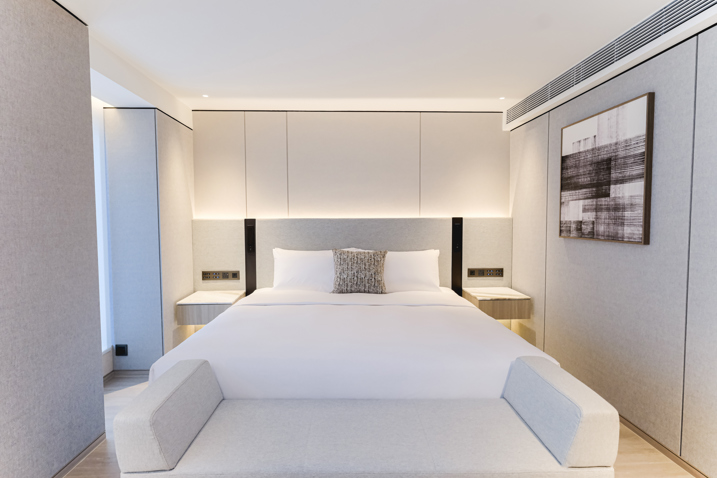 Located in the heart of Central and Sheung Wan, the complex of hotel and serviced apartment stands beside Man Wa Lane, renowned for its traditional chop-making artisans. The apartment's new design concept pays homage to this cultural heritage, incorporating stamp frame motifs while blending Eastern and Western aesthetics. The interplay of purple and gold tones creates an ambiance of refined luxury, establishing the property as a distinctive landmark in Central's dynamic landscape.